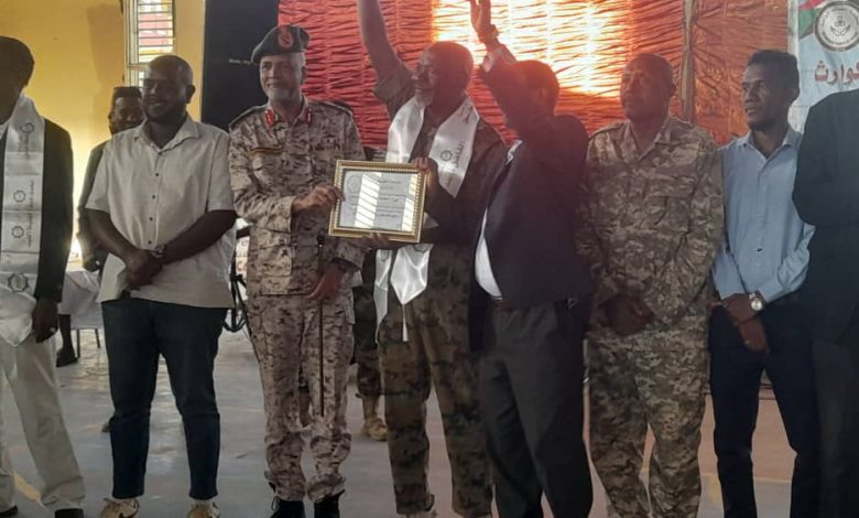 اللواء ركن حاتم لدي مخاطبته التخريج، حيا وقفة المواطنين مع القوات المسلحة وانهم كانوا السند في معركة الكرامة لتحرير البلاد من دنس الملشيا. وأشاد بمشروع وزارة الشباب كما اثني علي القائمين علي التدريب.