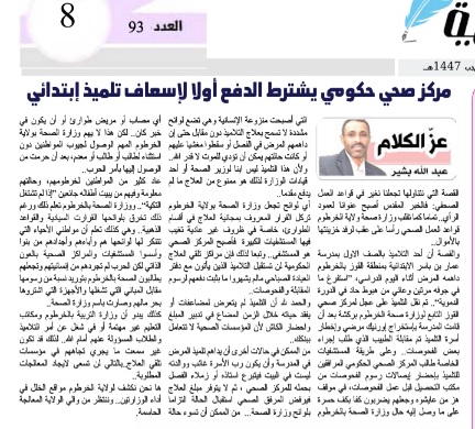 مركز صحي حكومي يشترط الدفع أولا لإسعاف تلميذ إبتدائي!!